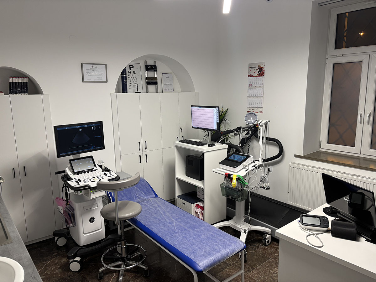 EKG (wykonywane rutynowo na każdej wizycie – w cenie wizyty), EKG wysiłkowe, Echo serca, Holter ciśnieniowy 1-3 dobowy (ABPM), Holter ciśnieniowy bezprzewodowy, Holter EKG 1-30 dobowy, 3 i 12 odprowadzeniowy, telemonitoring EKG, mobilny Holter, Pocket Holter, Holter kamizelka, Patch Holter, EKG na żądanie, rejestrator zdarzeń EKG, Holter spirometryczny